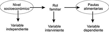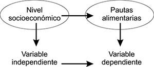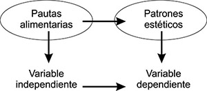 por lo que “pautas alimentarias” en esta relación opera como variable independiente.