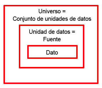 Datos, fuentes, unidades de datos y universo