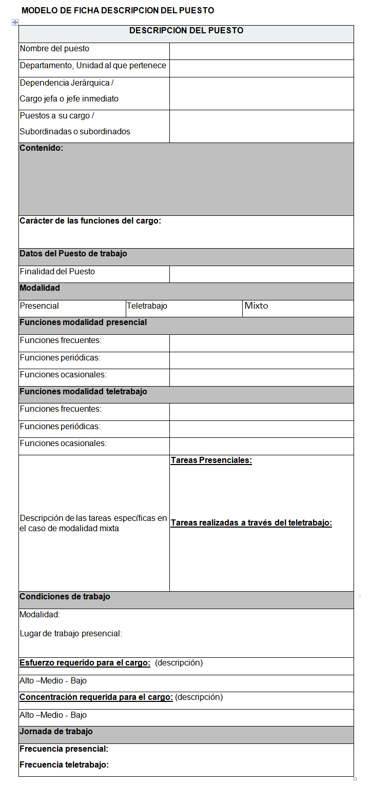 - Tareas principales: se describen en forma concisa las tareas que realiza el cargo.